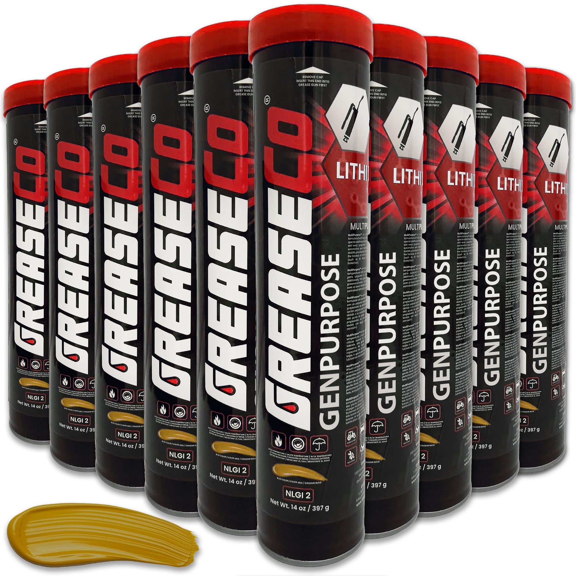 GenPurpose™ lithium grease tube 14 oz cartridge refills for grease guns provide high temperature, extreme pressure and water resistance protection serving as a superior "general purpose" lubricant to a wide range of household and industrial applications. Common applications include truck trailer hitch and ball joint connection points, lawn mower lube points, interior and exterior door locks and hinges, car door hinges, trunks, hoods, latches, exterior gates, bolts and threads subjected to moisture and/or weather (prevents rust and corrosion), hand tool repair and pivot points, farm jacks, snowblower connections bolts, worm gears, open gears, wrenches, and light-duty sliding mechanisms.